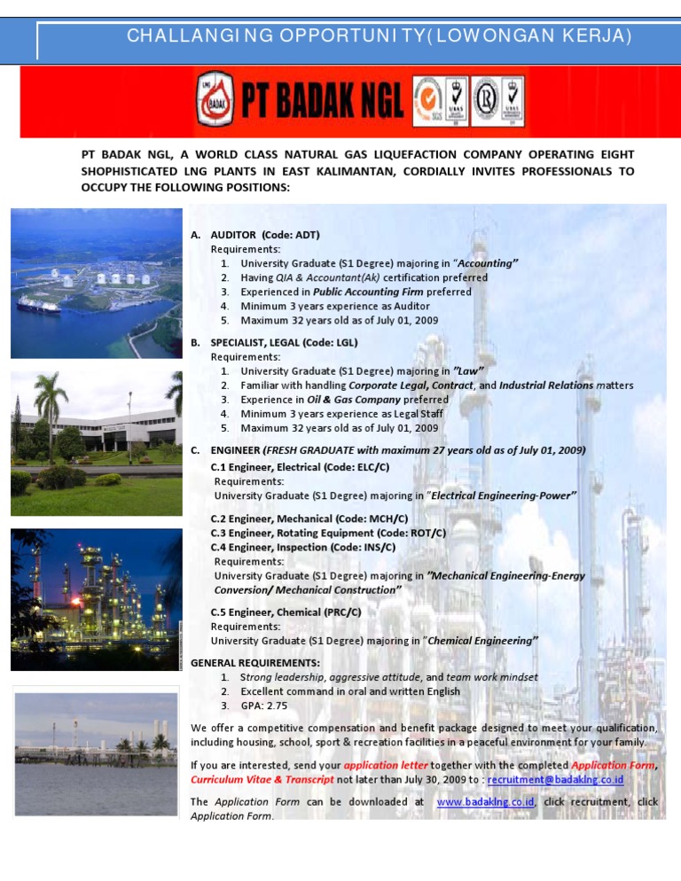 SHOPHISTICATED LNG PLANTS IN EAST KALIMANTAN, CORDIALLY INVITES PROFESSIONALS TO