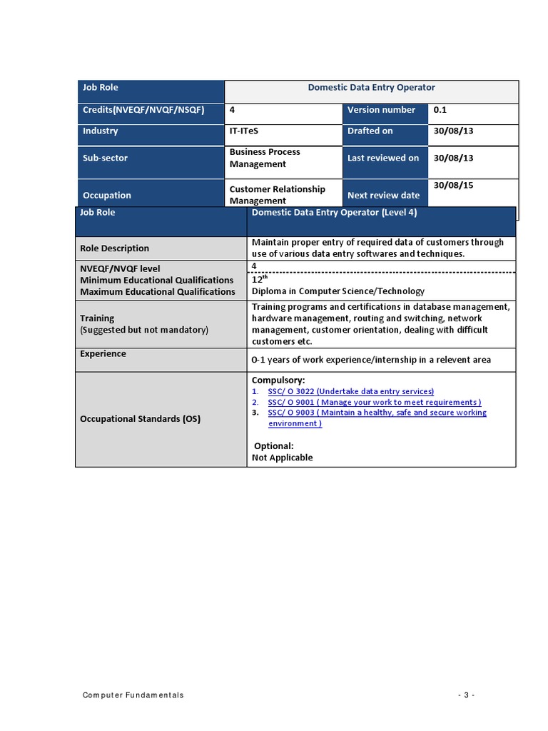 Job Role Domestic Data Entry Operator (Level 4)