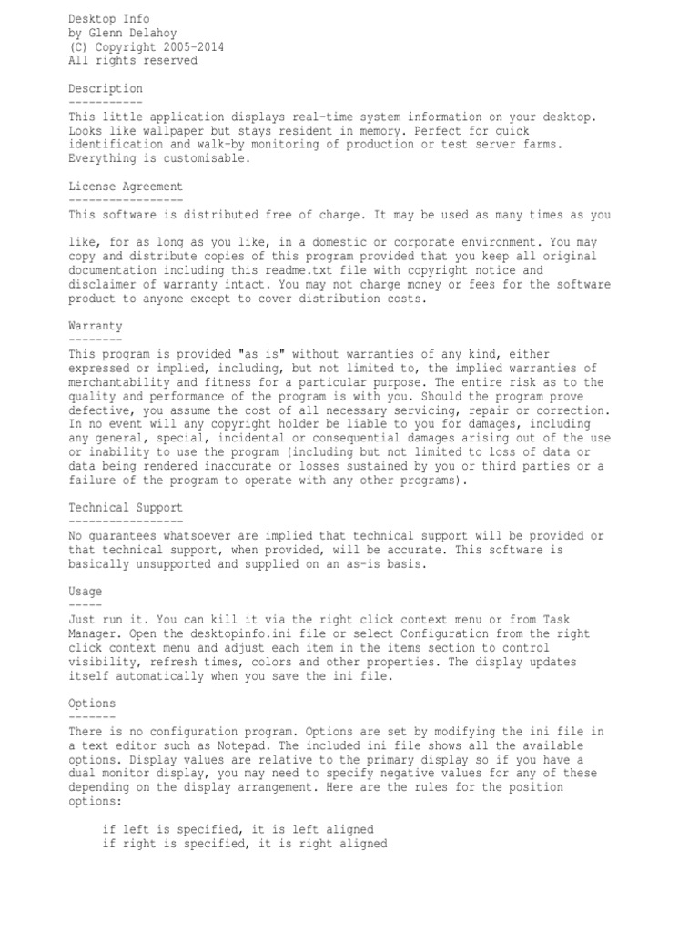 Looks like wallpaper but stays resident in memory. Perfect for quick