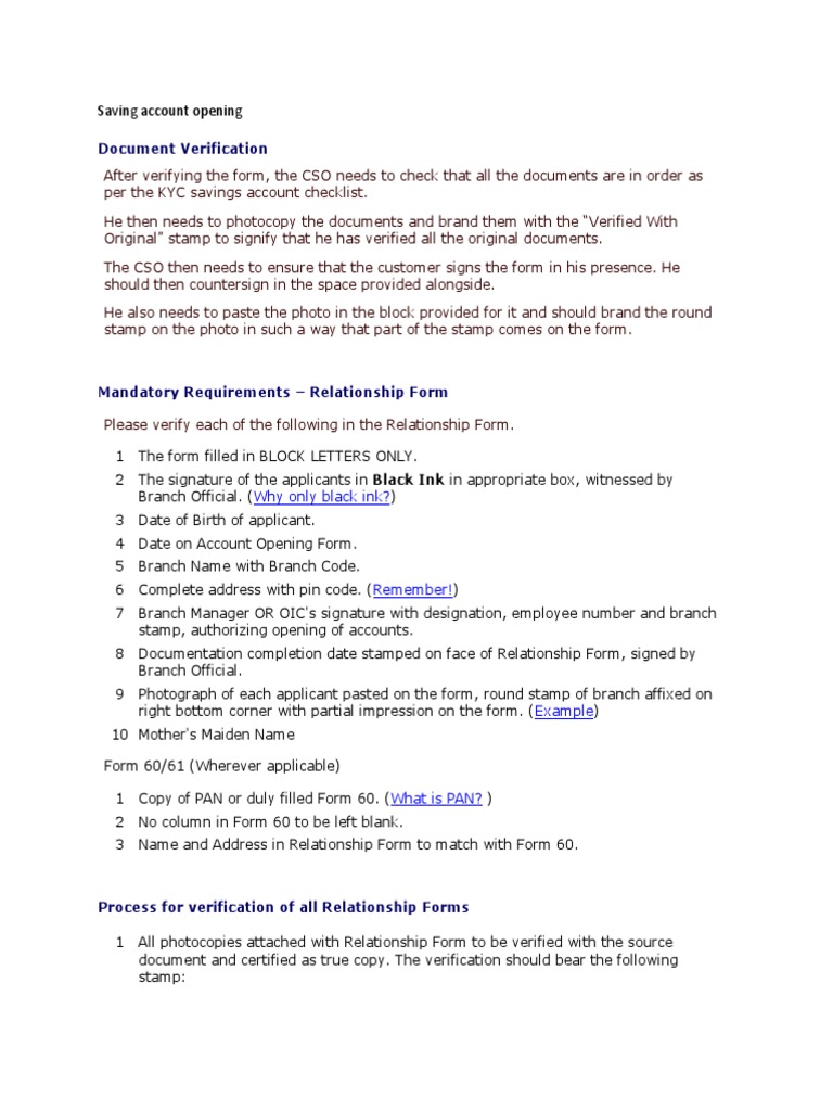 per the KYC savings account checklist.