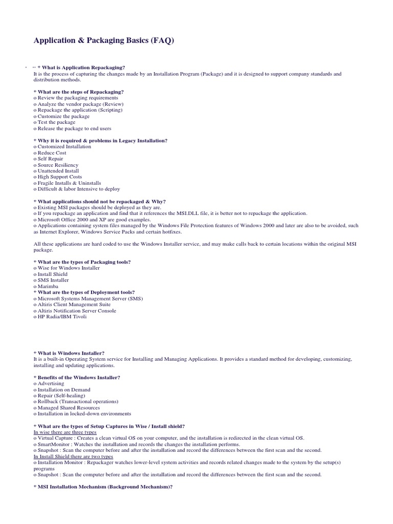 o If you repackage an application and find that it references the MSI.DLL file, it is better not to repackage the application.