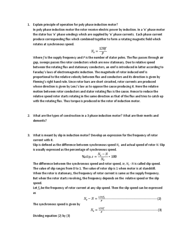 1. Explain principle of operation for poly phase induction motor?