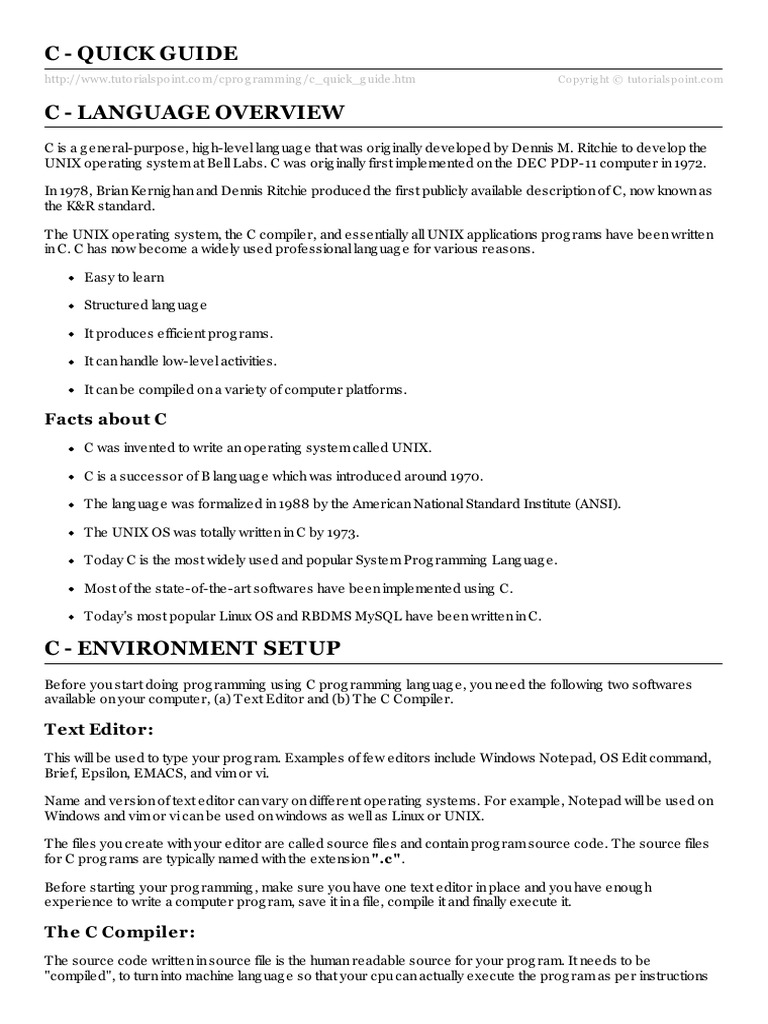 C is a general-purpose, high-level language that was originally developed by Dennis M. Ritchie to develop the