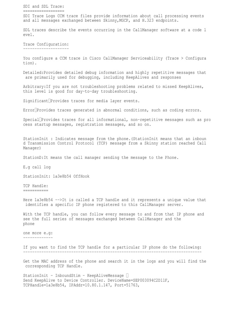 SDI Trace Logs CCM trace files provide information about call processing events