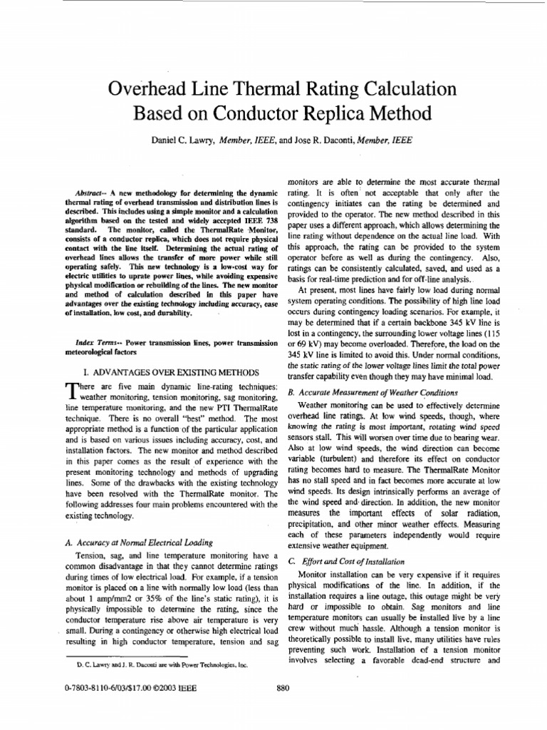 is the conductor temperature. and Ta is the air [ZI D. C. hv, " Ov e h d Line wing Monitor," U. s. Patent 6 441 603,