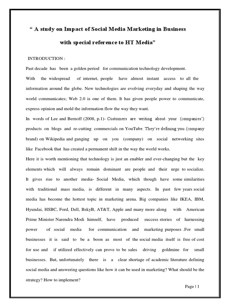 So the statement of the Problem is A study on Impact of Social Media Marketing in