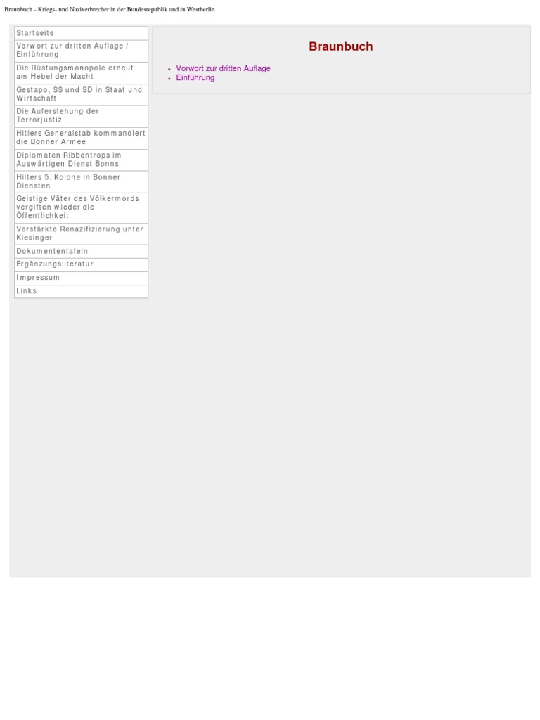 In der alten Bundesrepublik galt der Band, der 1965 erstmals im Staatsverlag der DDR erschienen war, lange als "politische Pornografie", weiß Rezensent Götz Aly. Ohne Frage handelte es sich bei dem Band, der die deutsche Öffentlichkeit mit der NS-Vergangenheit von Ministern und Staatssekretären, von Generälen und Admiralen der Bundeswehr, Justizbeamten, Staatsanwälten und Richtern, und weiteren Berufsgruppen konfrontierte, um Propaganda, räumt Aly ein. Doch ein "gedankenloses Machwerk" ist es nicht, hält der Rezensent fest. Er hebt hervor, dass sich die "empirischen Grundlagen" des Braunbuchs als äußerst beständig erwiesen haben und die Irrtumsquote deutlich unter einem Prozent liegt, was das Buch seines Erachtens vor zahllosen historischen Nachschlagewerken auszeichnet. Der größte Einwand, der aus heutiger Sicht gegen das Braunbuch erhoben werden kann, ist für Aly, dass es zu wenige Namen nannte. So habe es ungewollt auch die Illusion geweckt, alle Nichtgenannten hätten mit dem Nationalsozialismus nichts oder nur wenig zu tun gehabt.