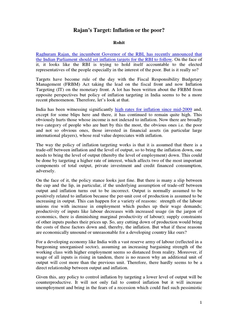 the Indian Parliament should set inflation targets for the RBI to follow. On the face of