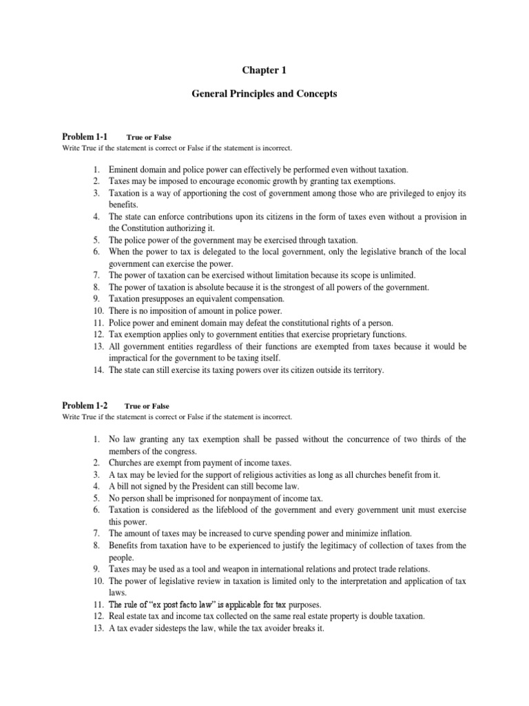 1. Statement No.1: Taxation is an inherent power of the government.