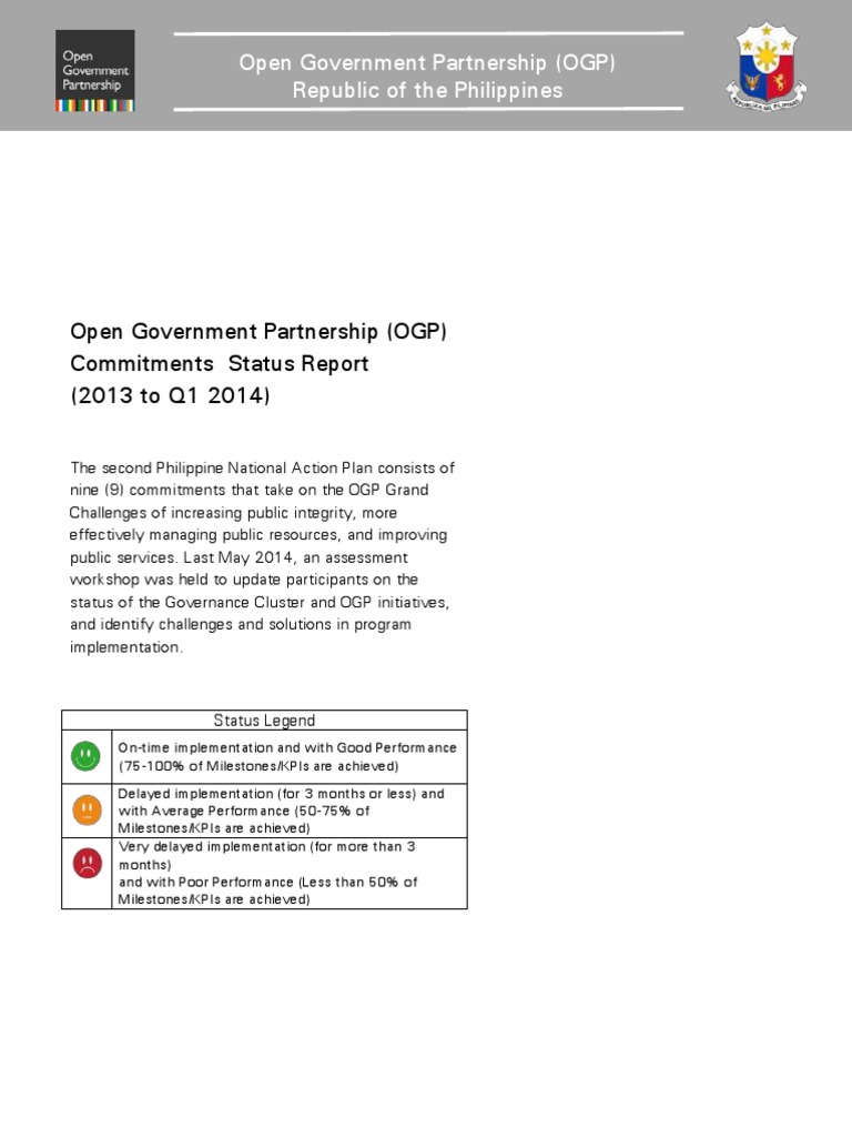 Open Government Partnership (OGP) Republic of the Philippines Open Government Partnership (OGP) Commitments Status Report (2013 to Q1 2014)