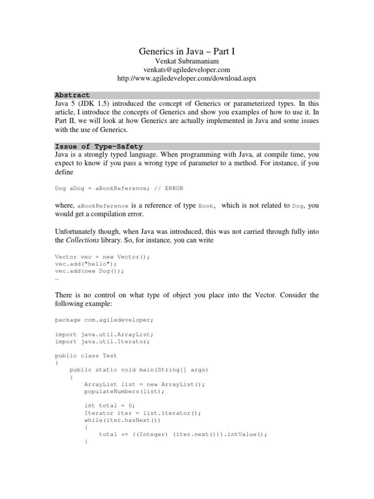 article, I introduce the concepts of Generics and show you examples of how to use it. In