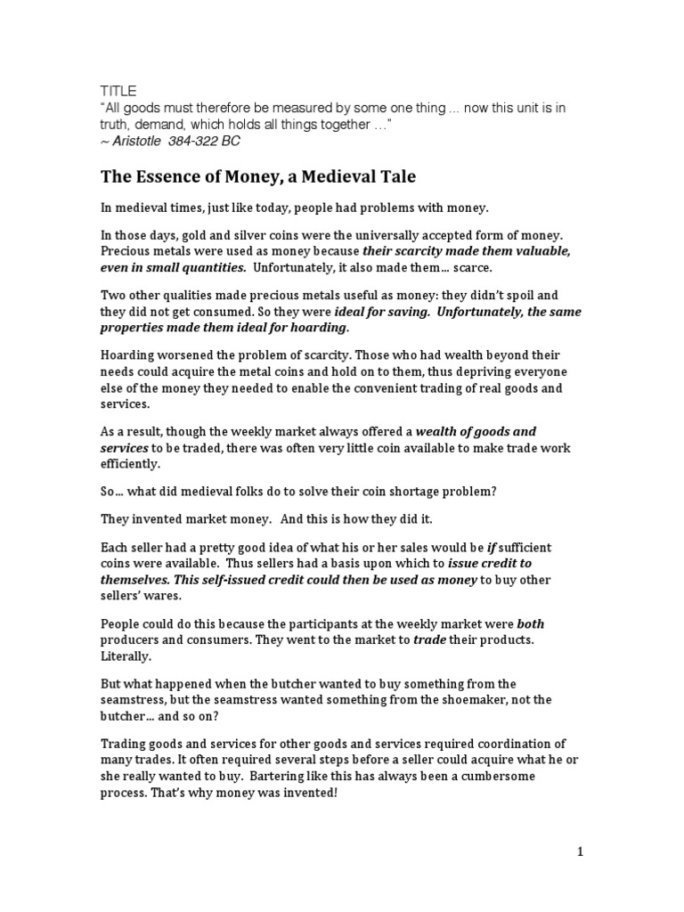 In meuieval times, just like touay, people hau pioblems with money.