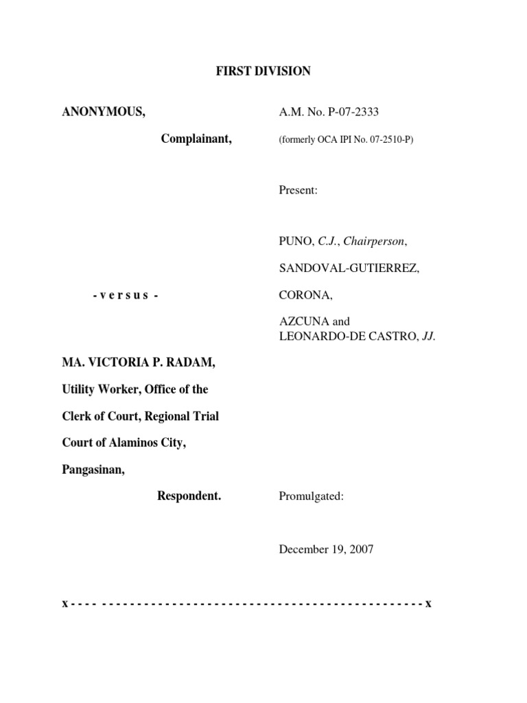ANONYMOUS, A.M. No. P-07-2333
