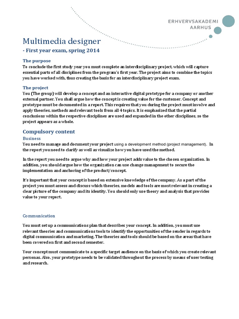 Spring 2014 MDC, Business Academy Aarhus. Project title. The URL of the digital prototype.