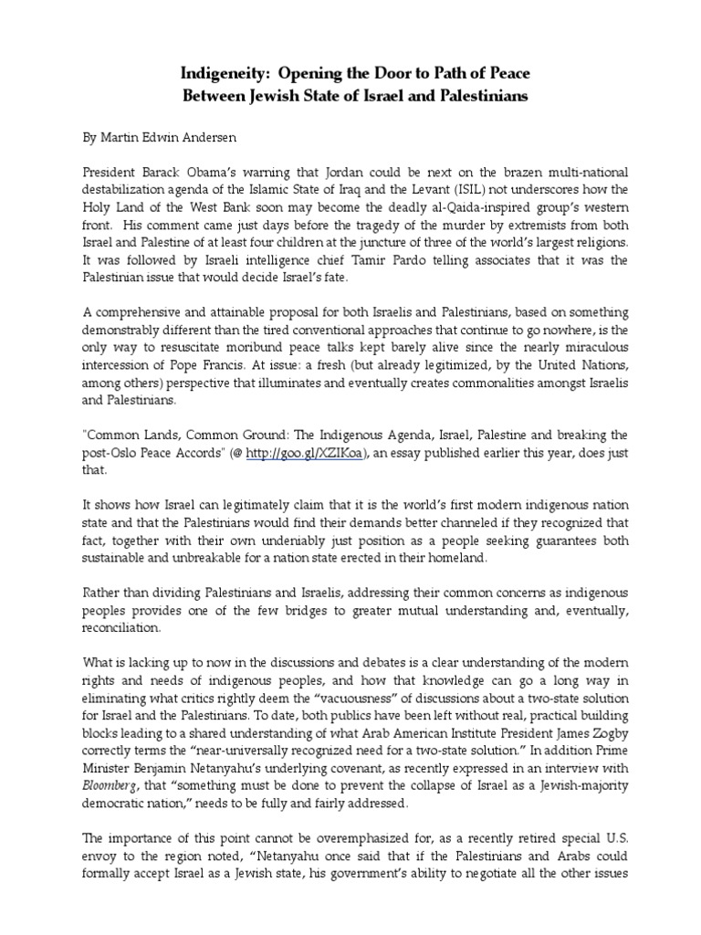 Indigeneity: Opening The Door To Path of Peace Between Jewish State of Israel and Palestinians
