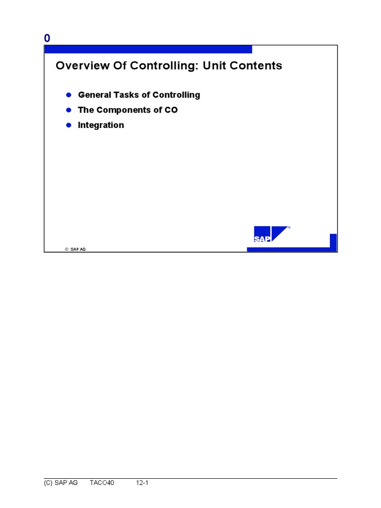 Overview of Controlling: Unit Contents: General Tasks of Controlling The Components of CO Integration