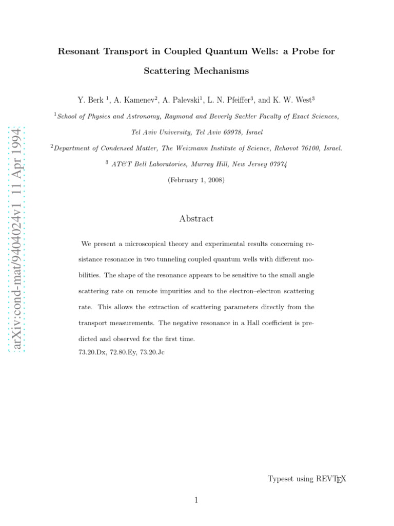 [1] A. Palevski, F. Beltram, F. Capasso, L. N. Pfeier and K. W. West, Phys. Rev. Lett.