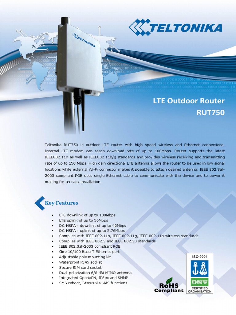 Teltonika RUT750 is outdoor LTE router with high speed wireless and Ethernet connections.