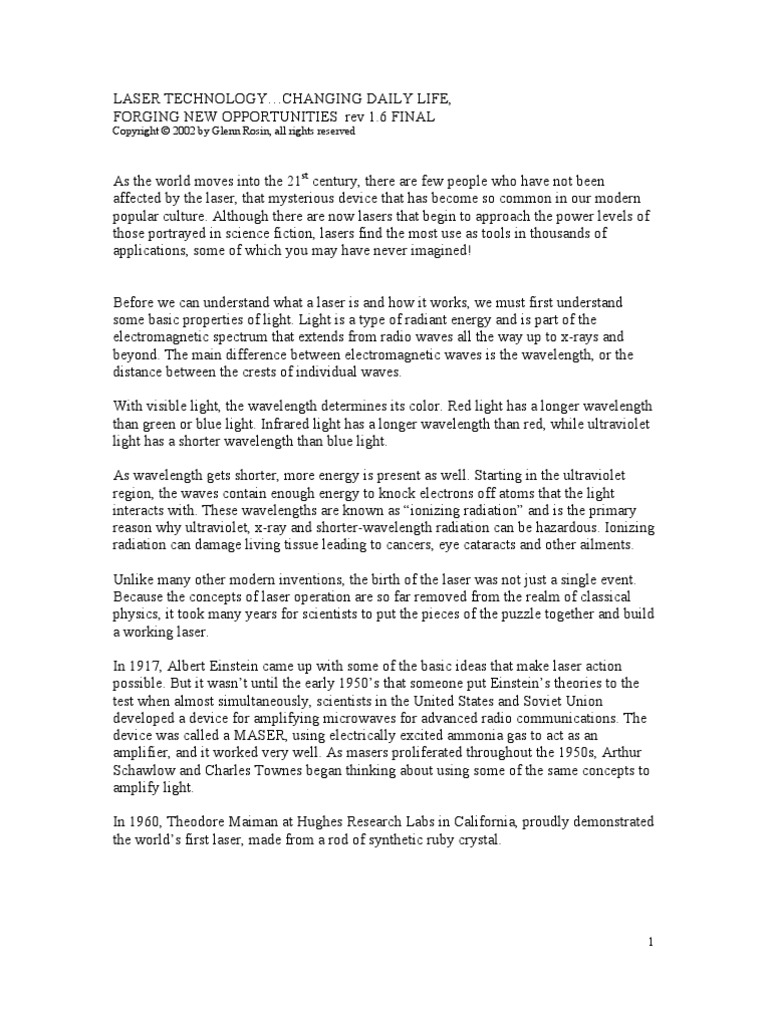 With today’s increasing reliance on optical technologies, you can expect the laser to lead