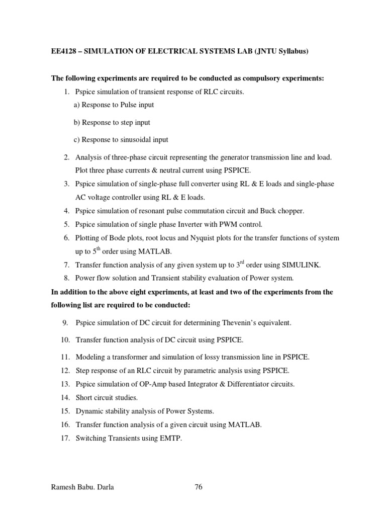 EE4128 SIMULATION OF ELECTRICAL SYSTEMS LAB (JNTU Syllabus)