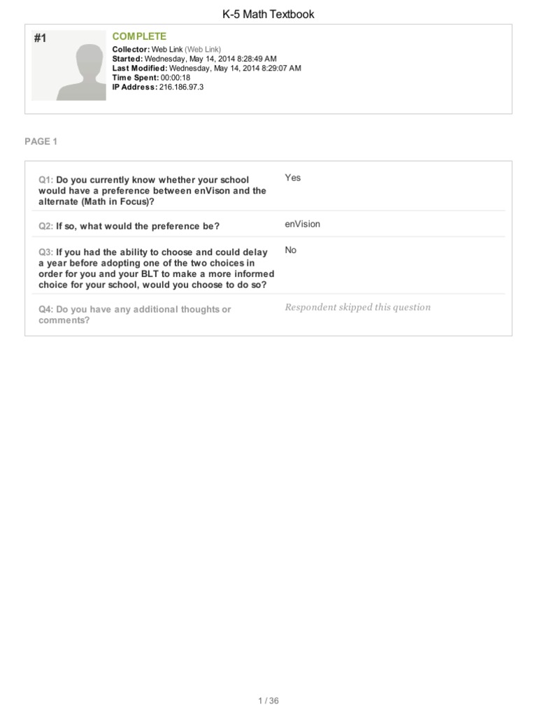 Seattle Public SchoolsPrincipal Survey On K-5 Math AdoptionResponses