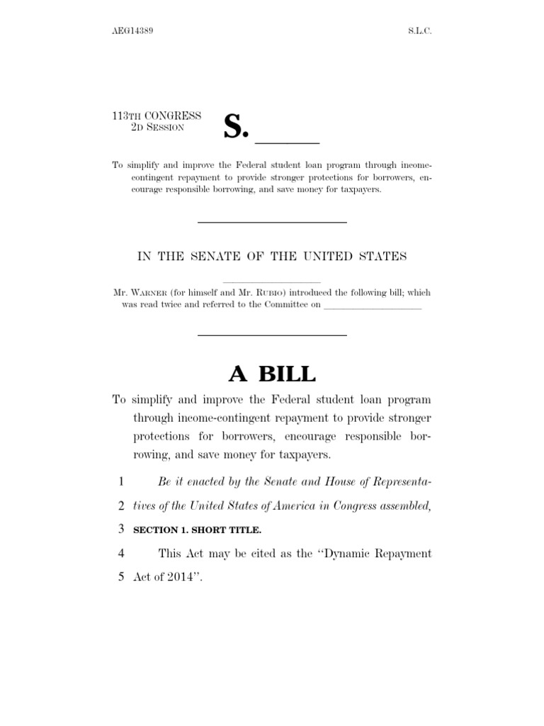 To simplify and improve the Federal student loan program through income- contingent repayment to provide stronger protections for borrowers, en-courage responsible borrowing, and save money for taxpayers.