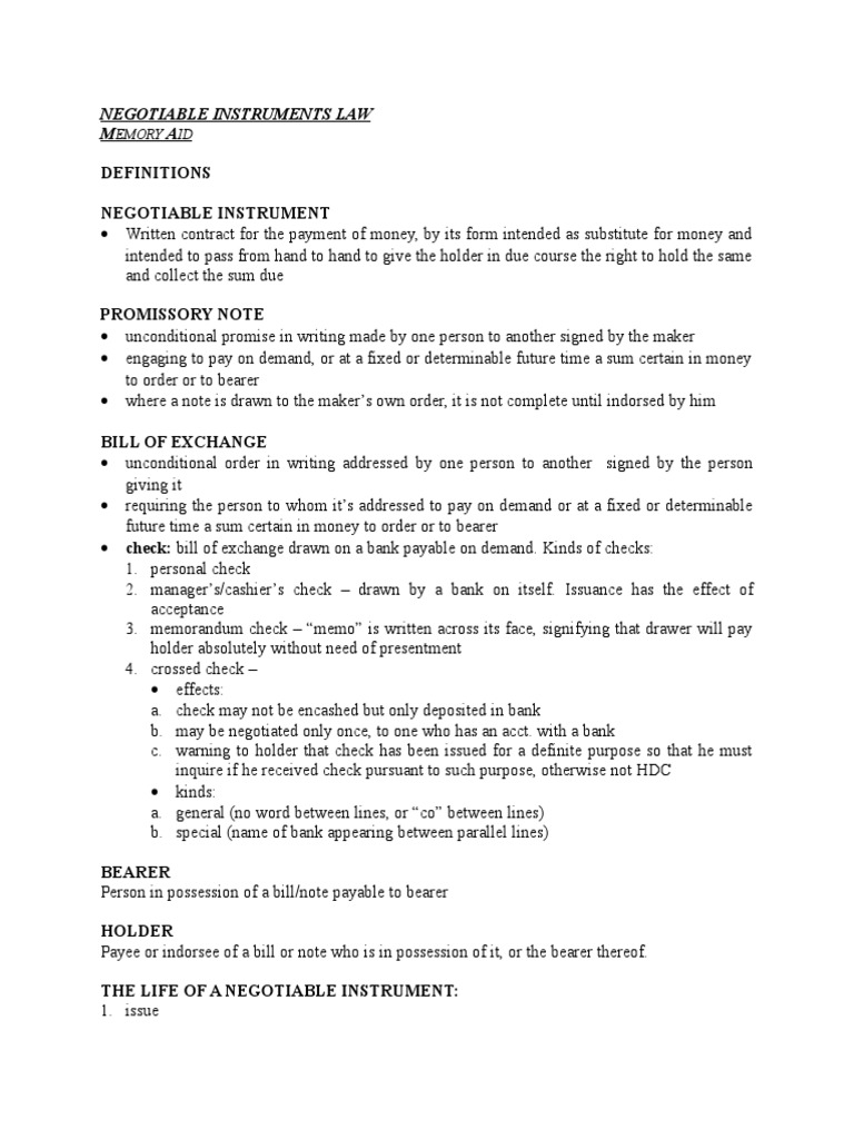THE LIFE OF A NEGOTIABLE INSTRUMENT: