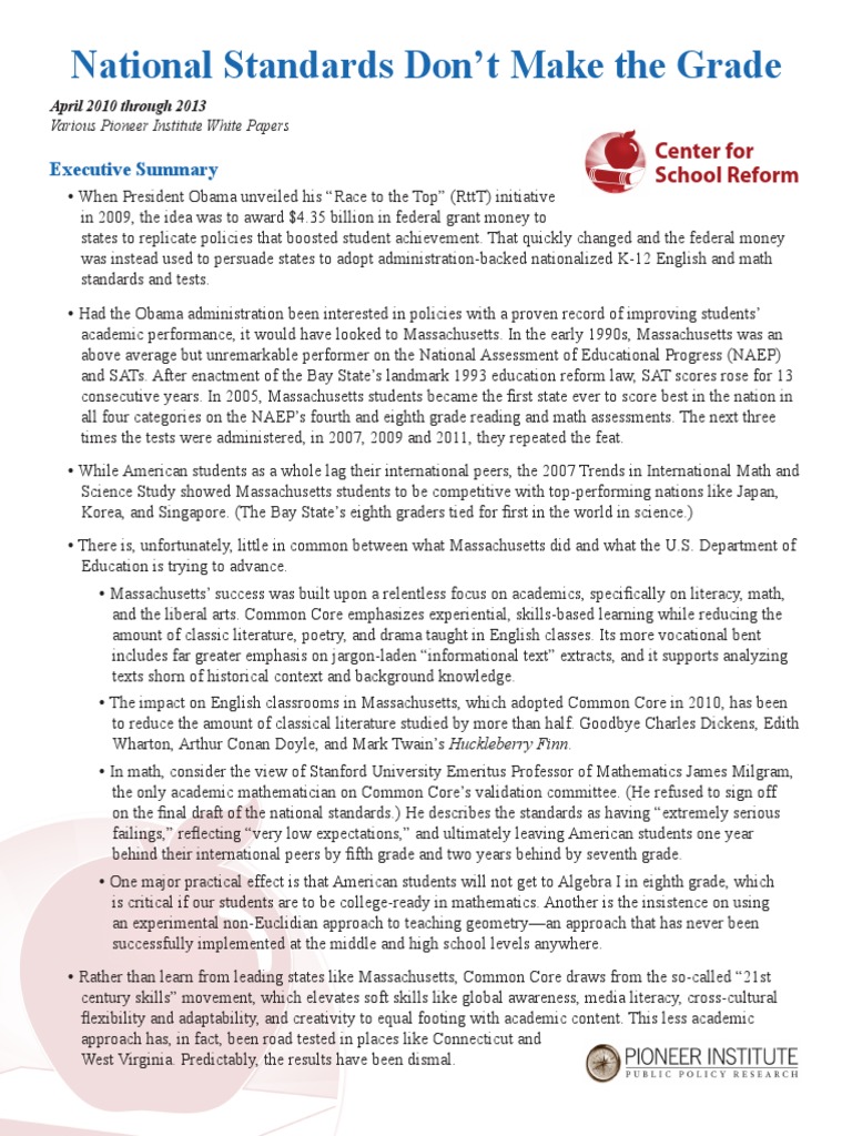 National Standards Don’t Make the Grade: Executive Summary