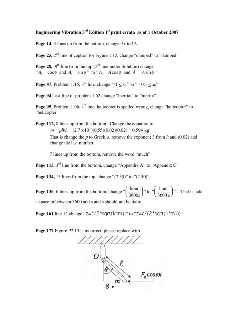 Page 188 third line of Problem 2.86: change and k =700 N/m to and k =2500 N/m.