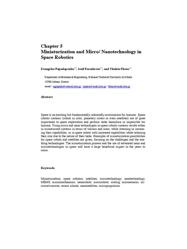 Miniaturization, space robotics, satellites, microtechnology, nanotechnology,