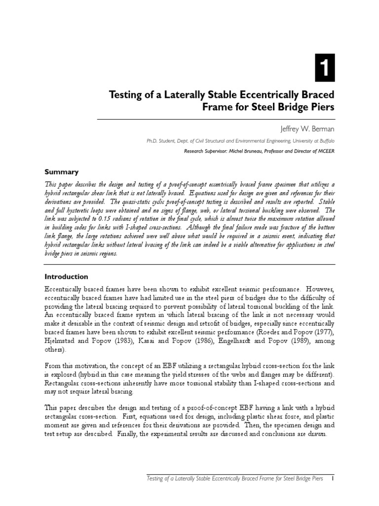 Testing of a Laterally Stable Eccentrically Braced Frame for Steel Bridge Piers 3
