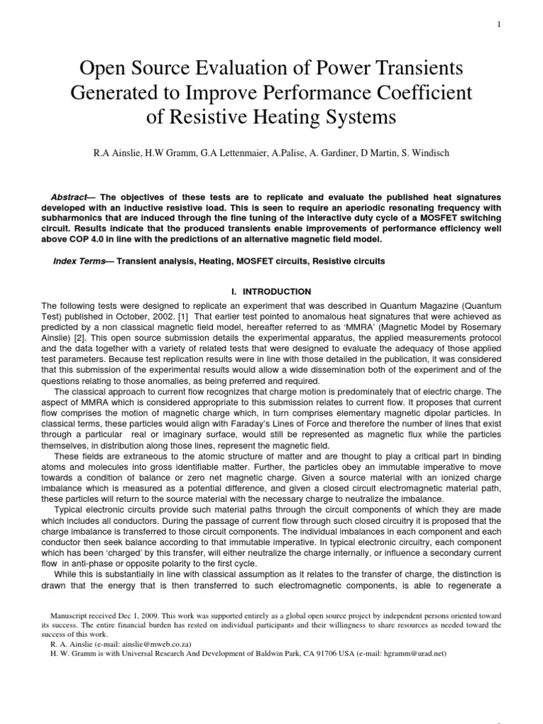 Open Source Evaluation of Power Transients Generated To Improve Performance Coefficient of Resistive Heating Systems