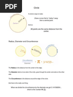 The Diameter starts at one side of the circle, goes through the center and ends on the other side.