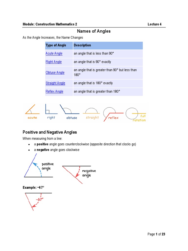 a positive angle goes counterclockwise (opposite direction that clocks go)