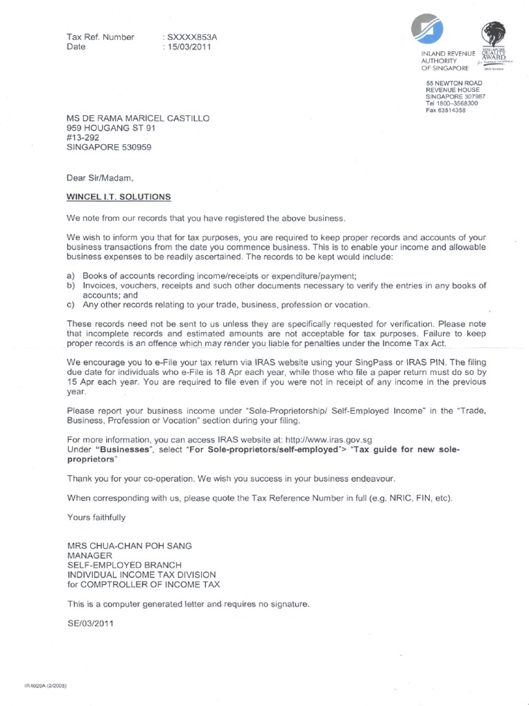 For more information, you can access IRAS website at: http://www.iras.gov.sg