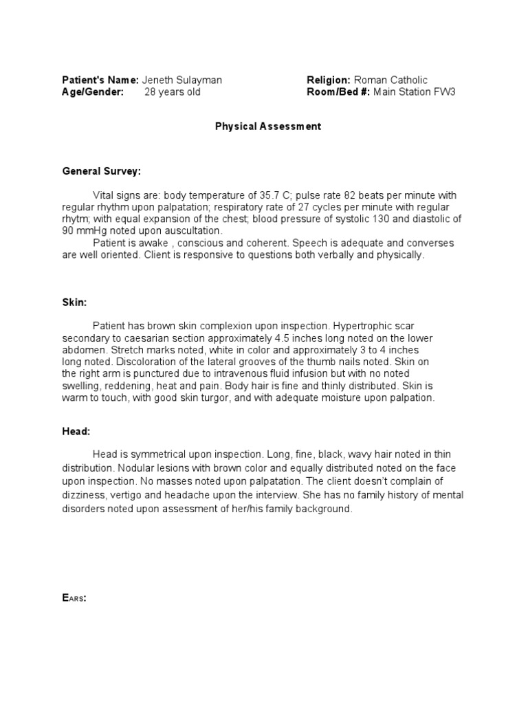 Patient's Name: Jeneth Sulayman Religion: Roman Catholic