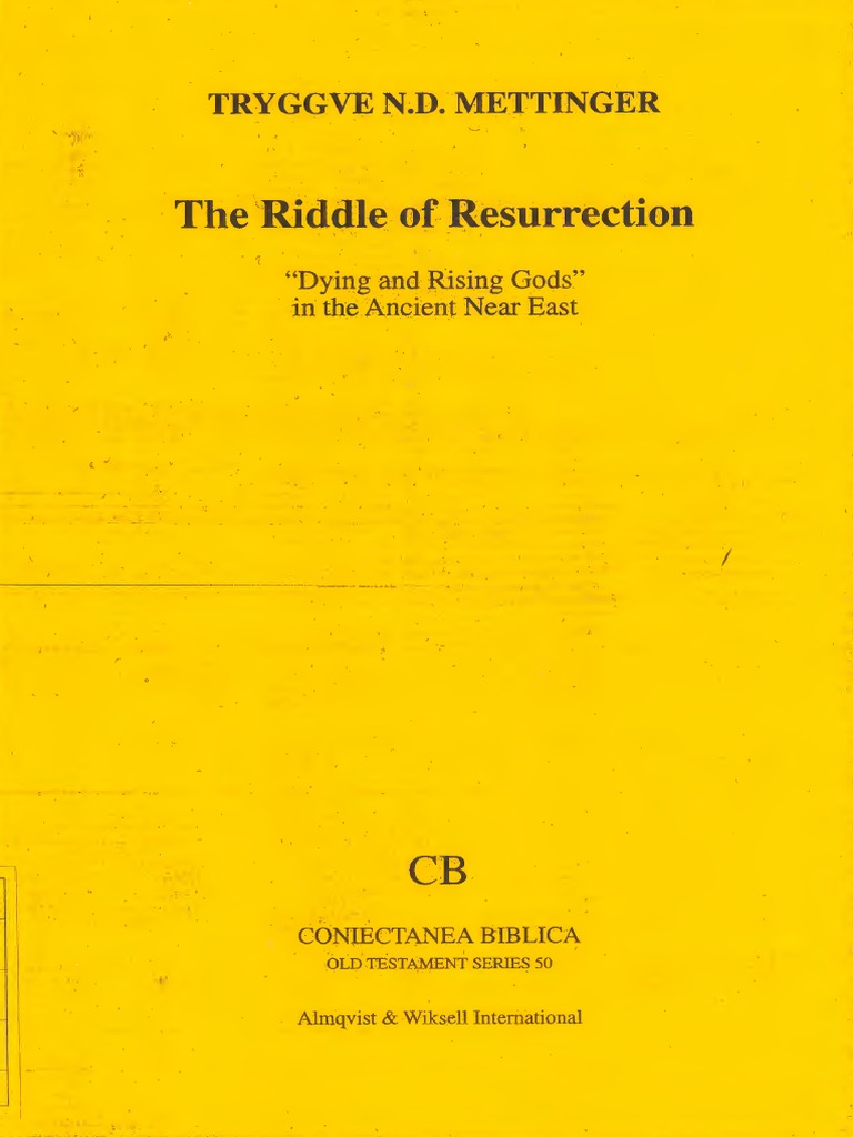 Tryggve N. D. Mettinger The Riddle of Resurrection Dying and Rising Gods in The Ancient Near East Coniectanea Biblica Citit