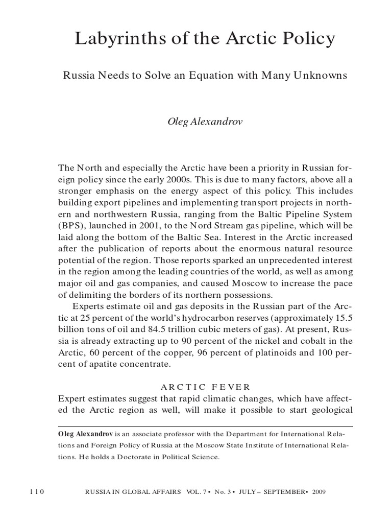 RUSSI A I N GLOBAL AFFAI RS VOL. 7 No. 3 J ULY SEPTEMBER 2009 111