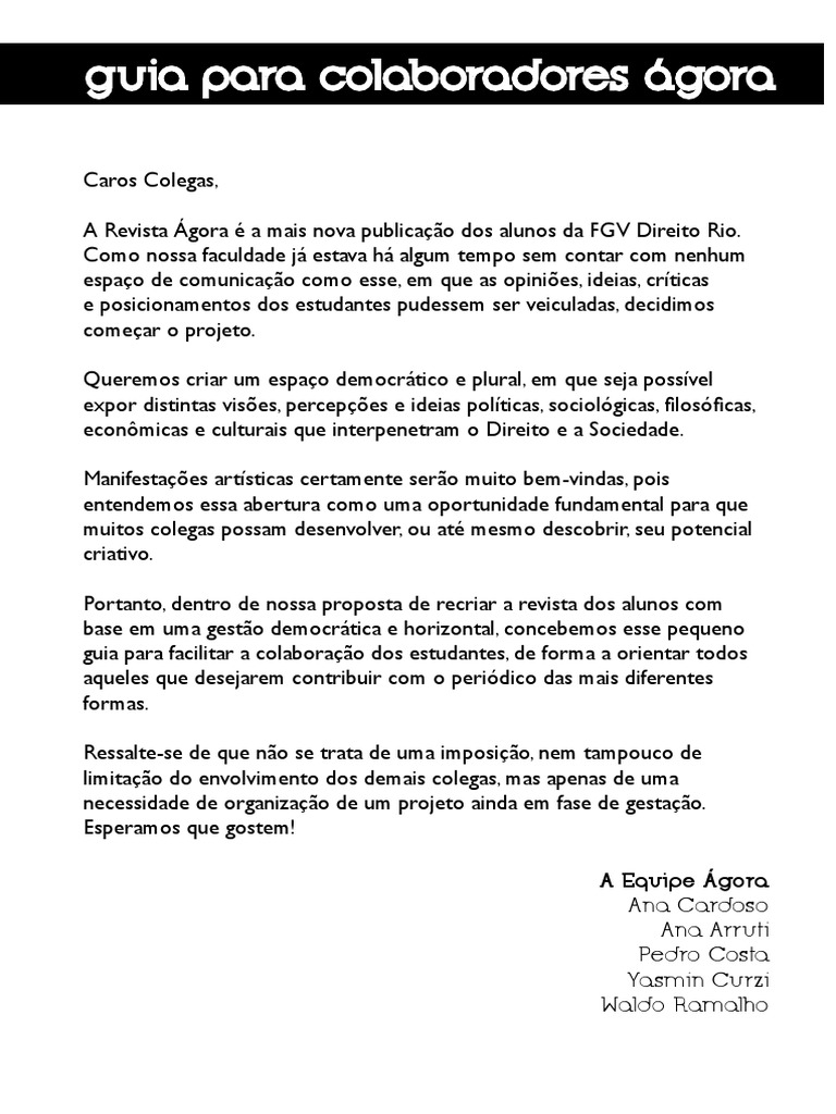 Guia para escrever e contribuir com Ágora, a revista dos estudantes da FGV Direito Rio.