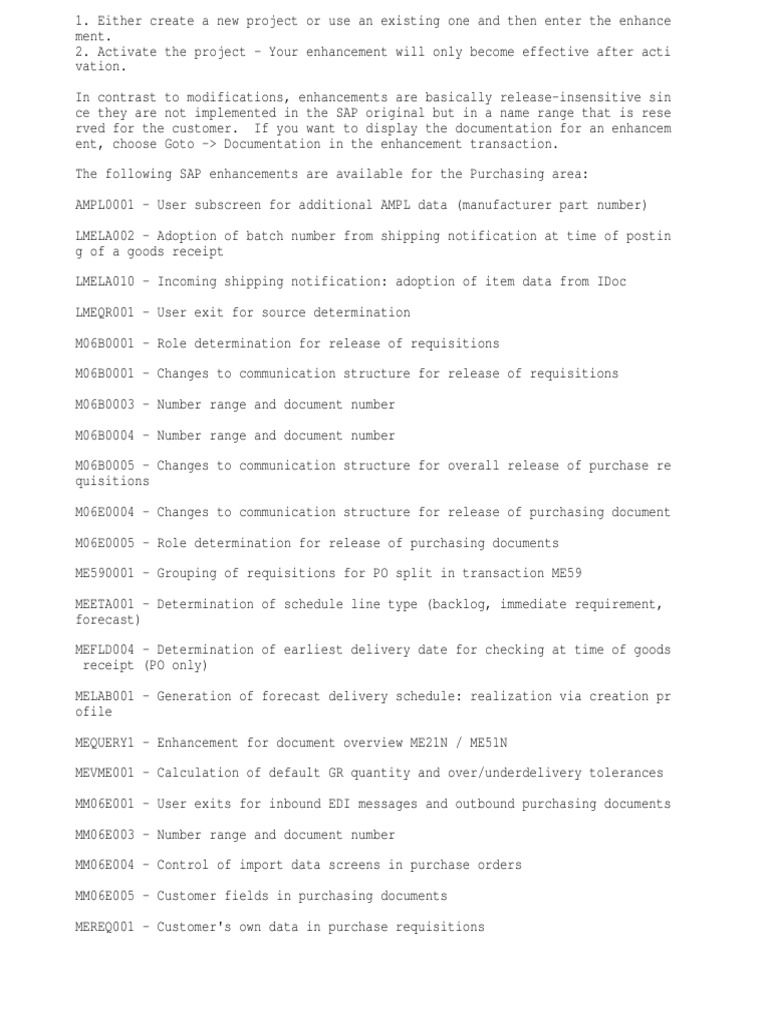 The following SAP enhancements are available for the Purchasing area: