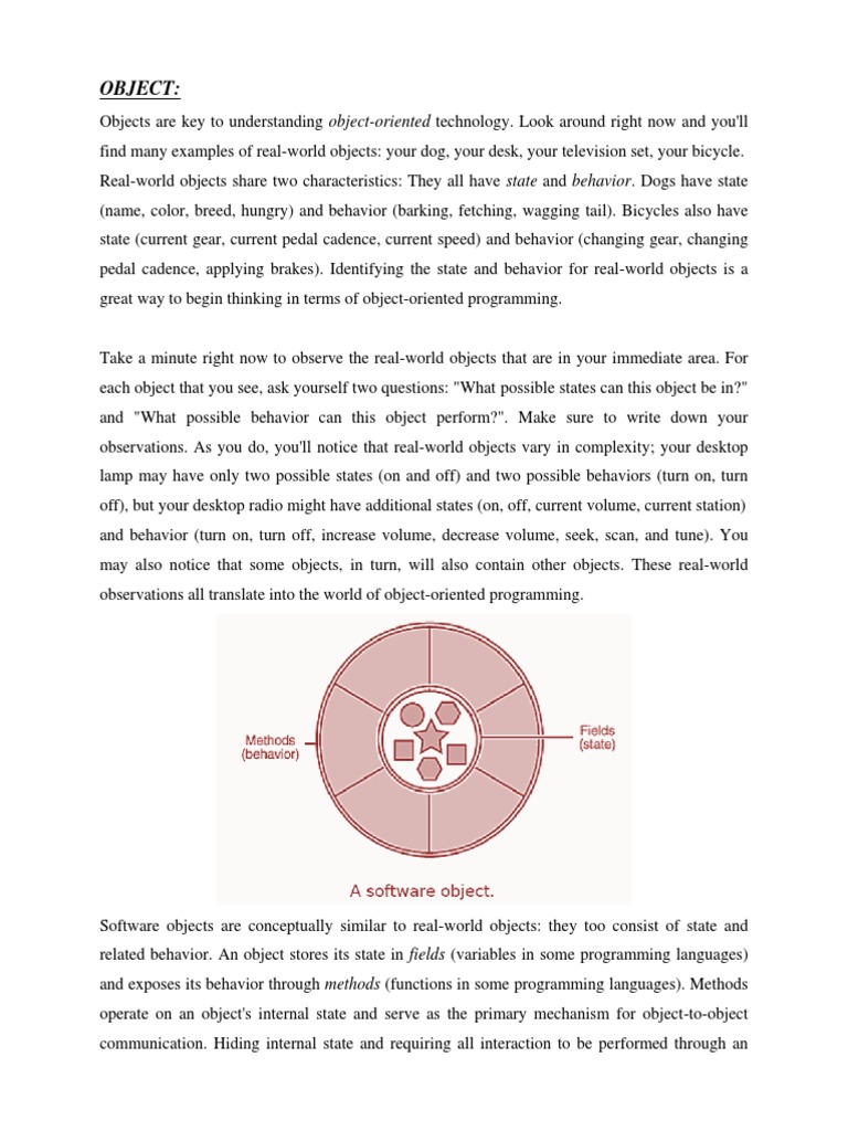 related behavior. An object stores its state in fields (variables in some programming languages)