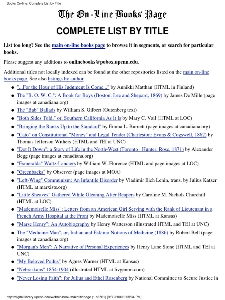 Please suggest any additions to onlinebooks@pobox.upenn.edu.
