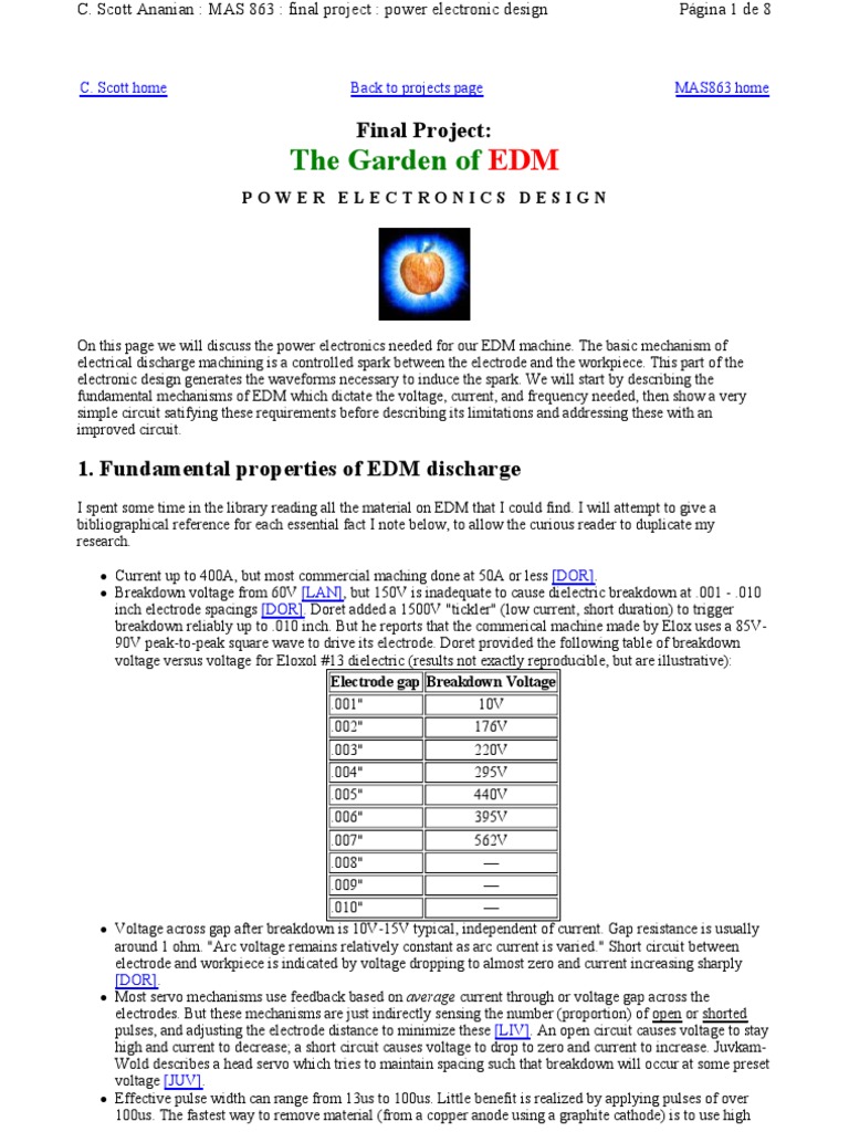 I spent some time in the library reading all the material on EDM that I could find. I will attempt to give a