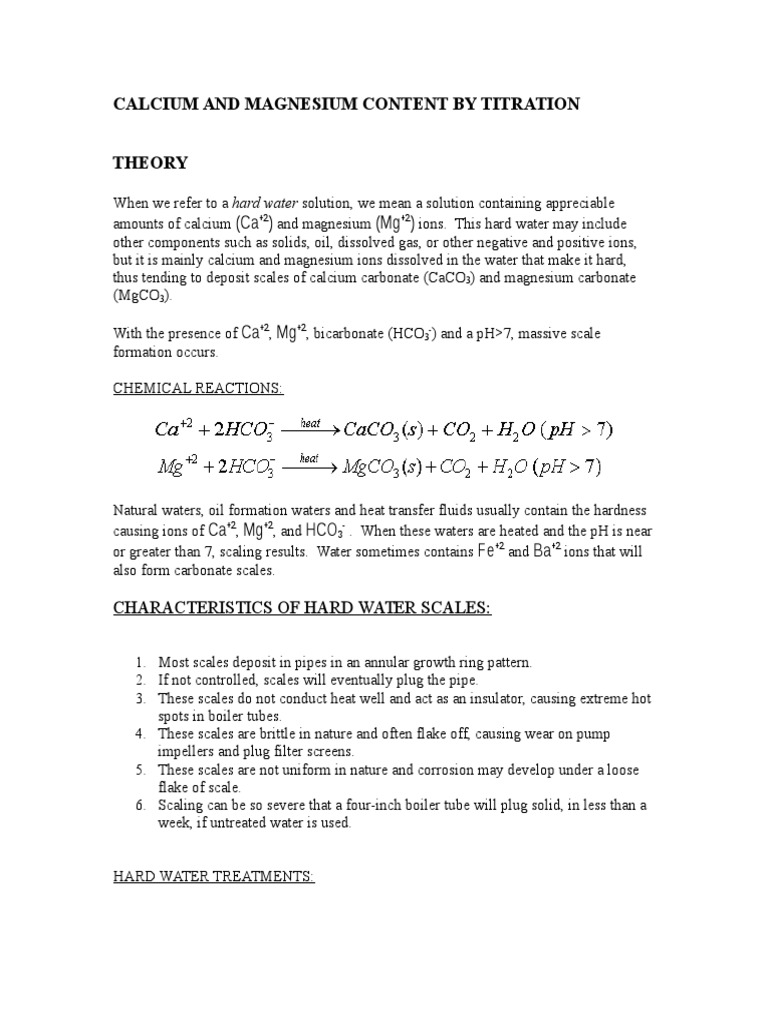 CALCIUM AND MAGNESIUM CONTENT BY TITRATION