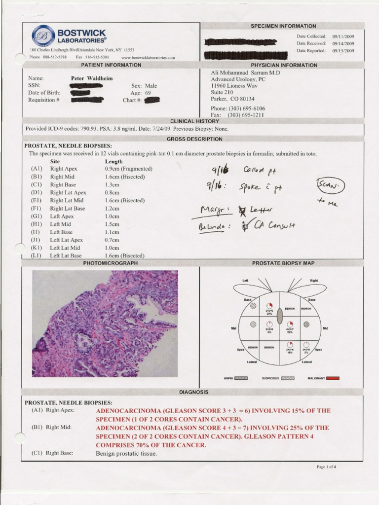 Your Gleason score is the key number to note. This is the combination ofthe Gleason grade of the two largest areas of cancer