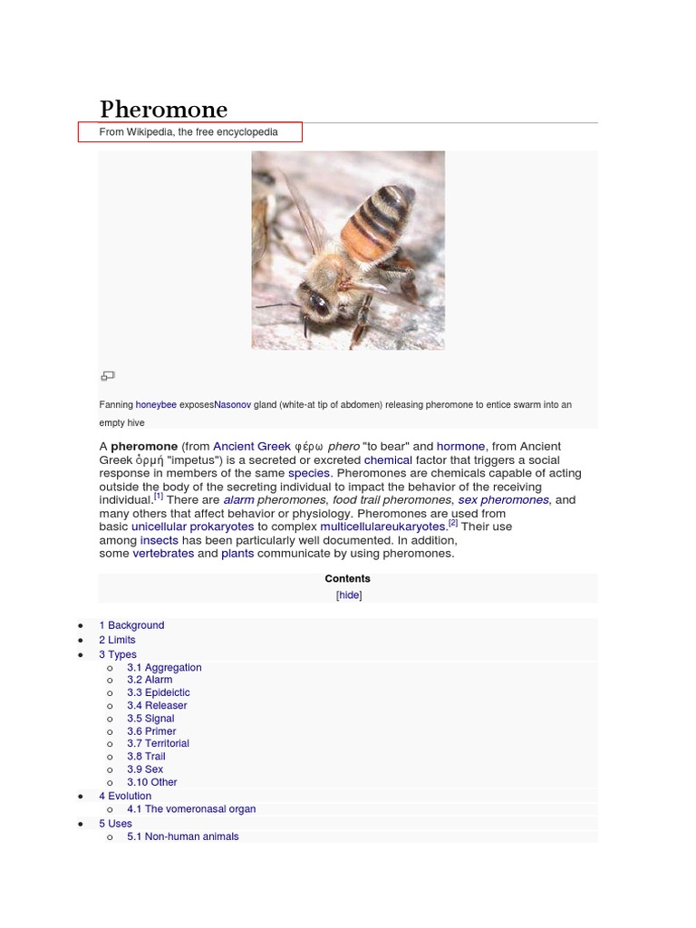 A pheromone (from Ancient Greek phero "to bear" and hormone, from Ancient