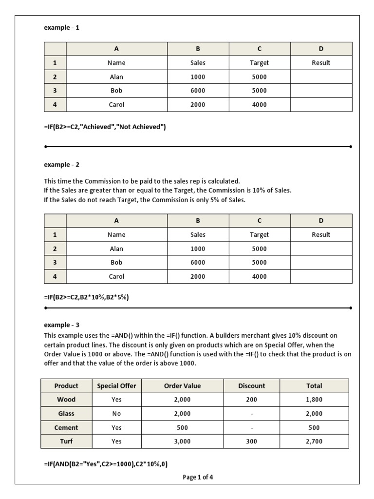 This example uses the =AND() within the =IF() function. A builders merchant gives 10% discount on