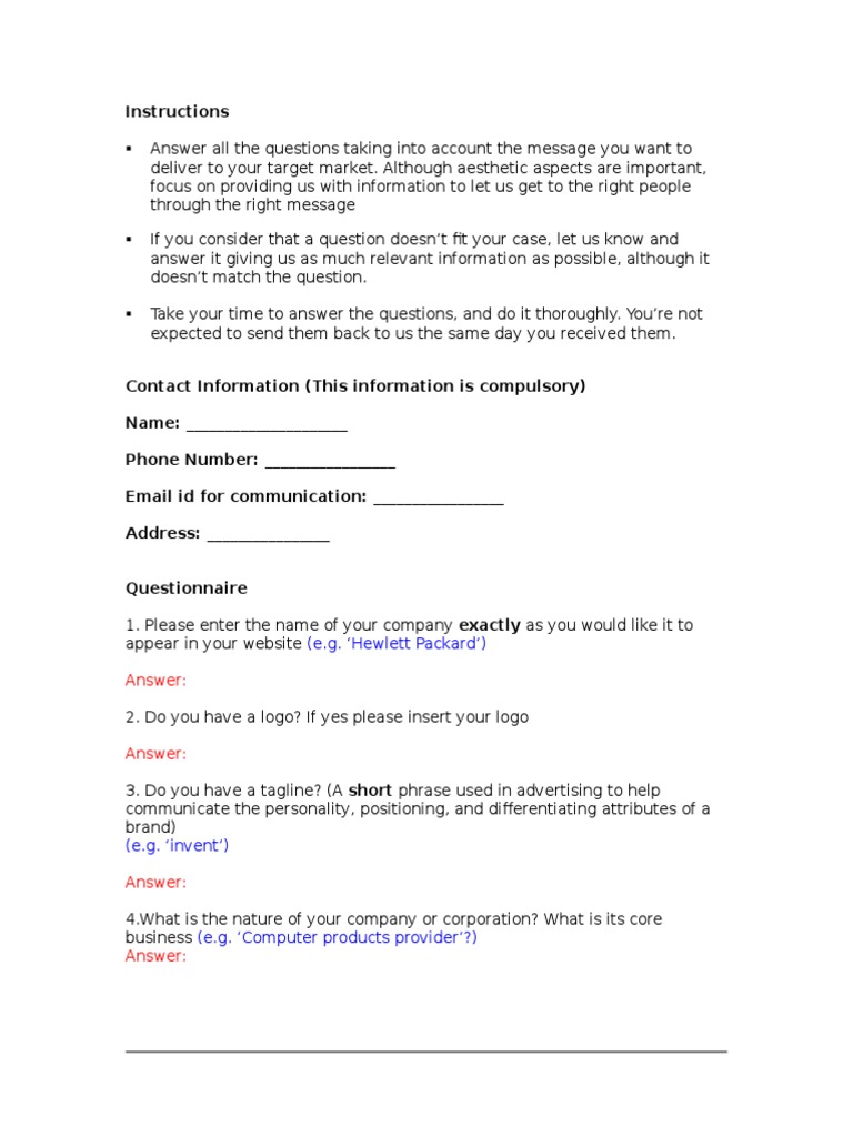 Take your time to answer the questions, and do it thoroughly. oure not