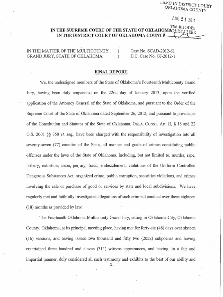 Grand Jury, having been duly empaneled on the 22nd day of January 2013, upon the verified
