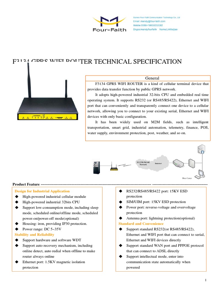 F3134GPRSWIFI ROUTER TECHNICAL SPECIFICATION